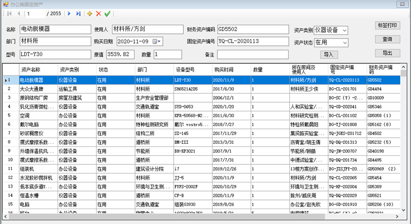 啟用固定資產信息化管理系統(tǒng),打印張貼固定資產信息化二維碼標簽,推進信息化管理。
