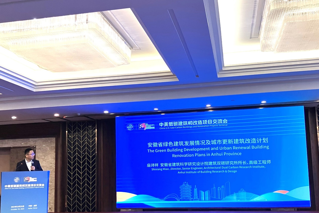 10月25日上午,由中國貿(mào)促會(huì)產(chǎn)業(yè)促進(jìn)部、美國駐上??傤I(lǐng)事館主辦,安徽省貿(mào)促會(huì)承辦的中美低碳建筑和改造項(xiàng)目交流會(huì)在合肥召開。安徽建科黨委副書記、院長劉春雷率隊(duì)參加。