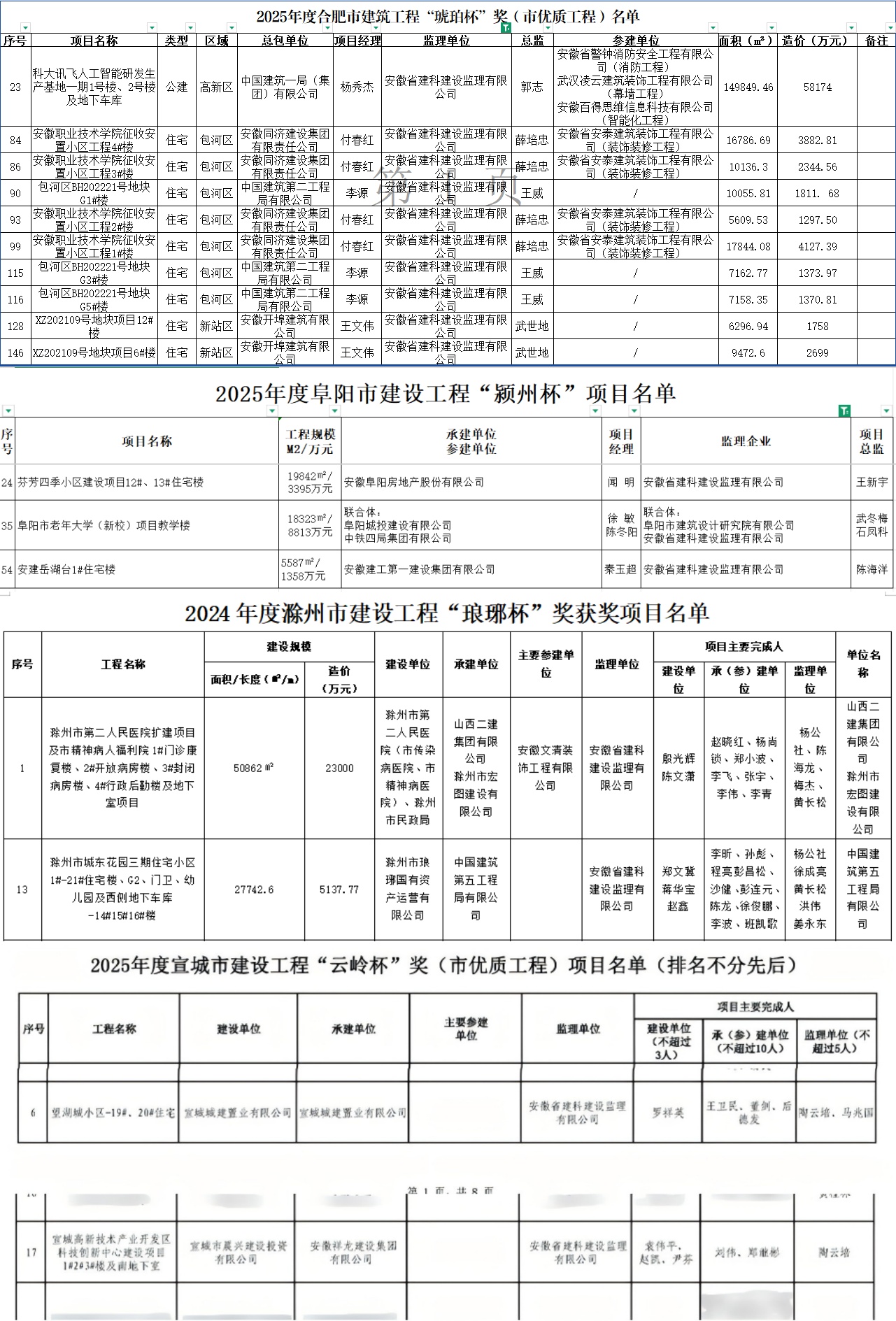 近日,安徽省建科院多個(gè)項(xiàng)目獲得"琥珀杯""潁州杯""瑯琊杯""云嶺杯"四項(xiàng)優(yōu)質(zhì)工程獎(jiǎng)項(xiàng),彰顯了我院在建筑工程領(lǐng)域的卓越實(shí)力。
